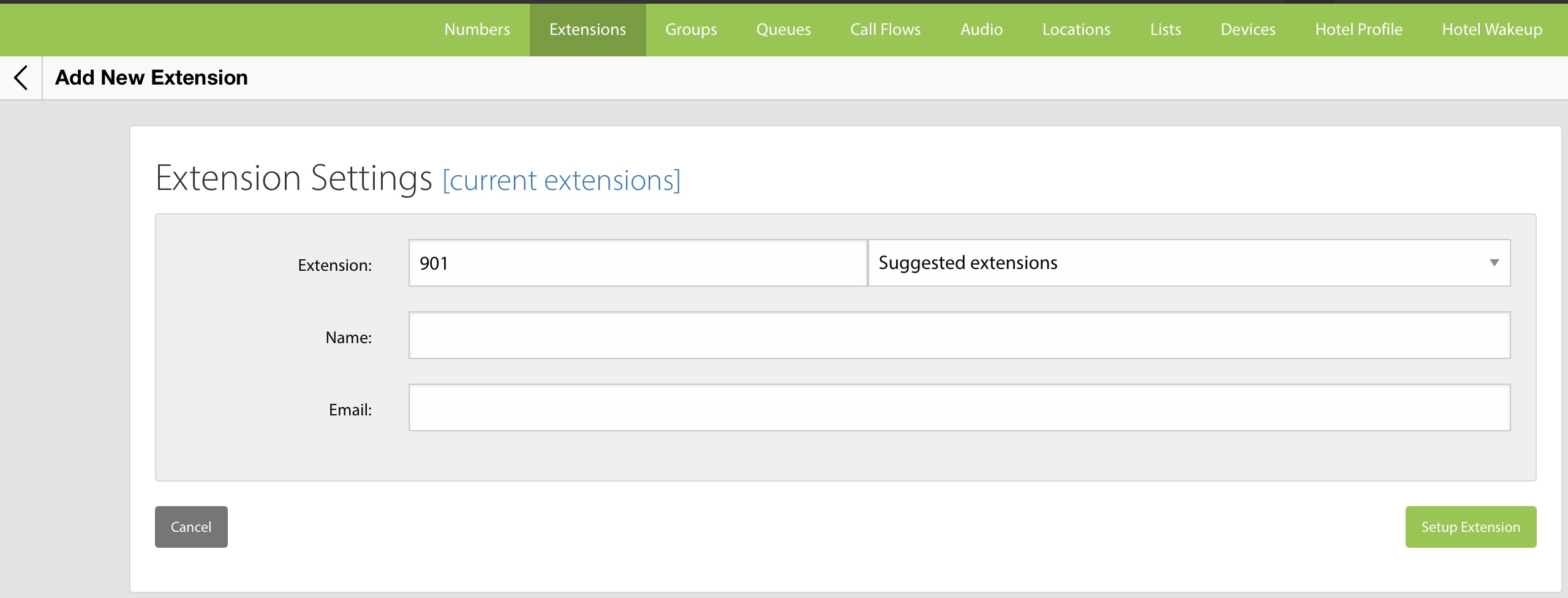 You can also use the Suggested Extensions dropdown to pick the next available extension from predefined ranges that are available.
