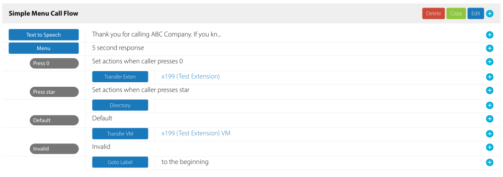 “Thank you for calling ABC Company. If you know your party’s extension, please dial it now. For immediate assistance, press 0. For the company directory, press star.”